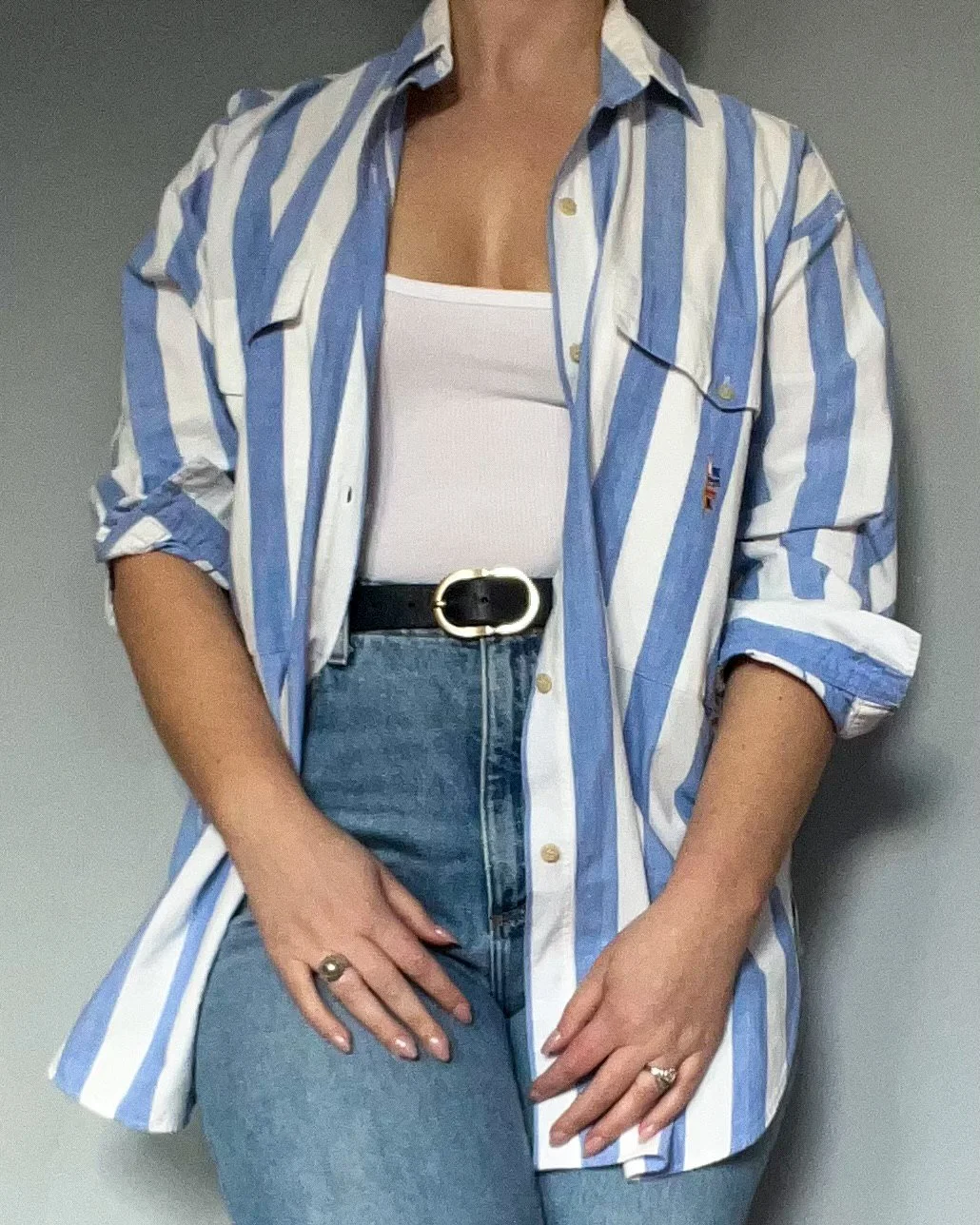 Image 1 of 1 Blue Thick Striped Oxford - Women $65.00 sold out Size S100 % CottonMade in Hong Kong Sold Out Added! Size S100 % CottonMade in Hong Kong
